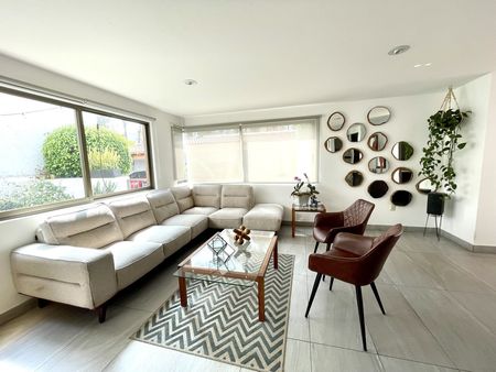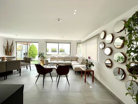 Espectacular casa en condominio horizontal de 5 casas, ubicada en calle cerrada a una cuadra de Avenida San Francisco. con 109 m2 de superficie y 230 m2 de construcción, 3 recámaras, la principal con vestidor y baño completo, las otras dos recámaras comparten baño, cocina integral y estancia principal con vista y salida al jardín privado, estudio, family room con terraza , área de lavado y cuarto de servicio con baño completo. Estacionamientos techados e independientes para 3 coches. Vigilancia 24/7