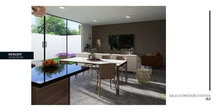 3 grandes habitaciones en planta alta y una habitación o estudio en planta baja, tres baños y medio, cocina equipada, barra desayunador, acabados de lujo, cuarto de servicio, jardín interior, área de lavado, comedor, sala, amplio jardín, sala de TV, y cochera para 2 autos.