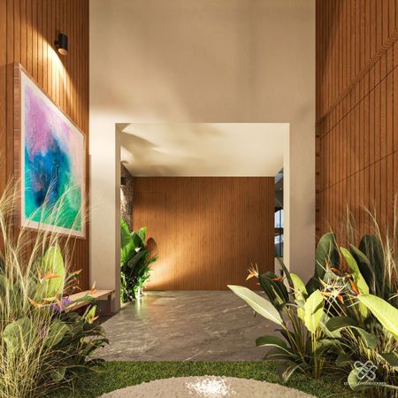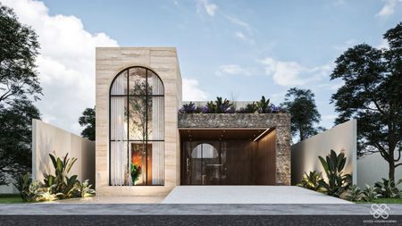 Residencia Balam combina un diseño contemporáneo con toques mediterráneos y un estilo Wabi Sabi. Se distingue por sus dobles alturas, curvas suaves, acabados en chukum y piedra natural, además de amplias jardineras que aportan vida a la fachada e interiores.