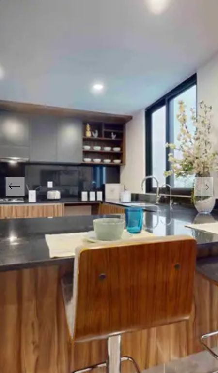 Cocina equipada con barra desayunador de granito
