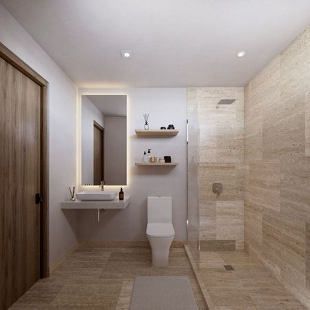 • Lavabo con cubierta en mármol pulido “Puebla Fiorito”
