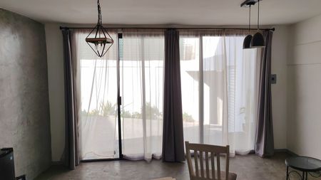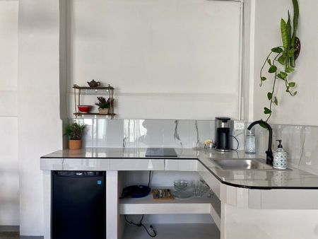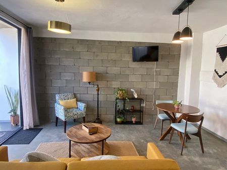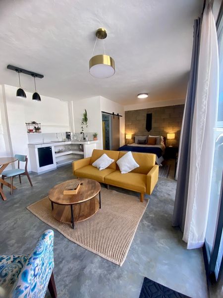 Cada estudio cuenta con área de sala, cocina equipada con parrilla frigobar,recámara, baño completo, terraza, patio, sisternas,
