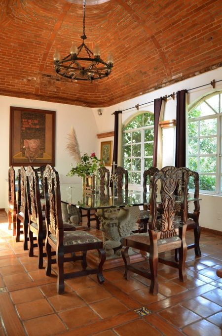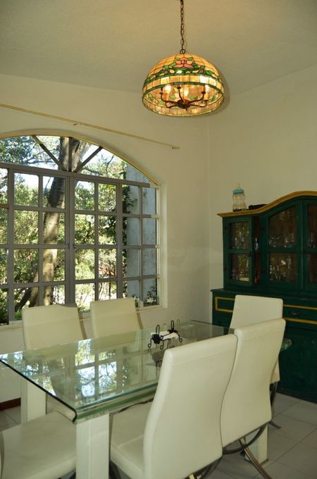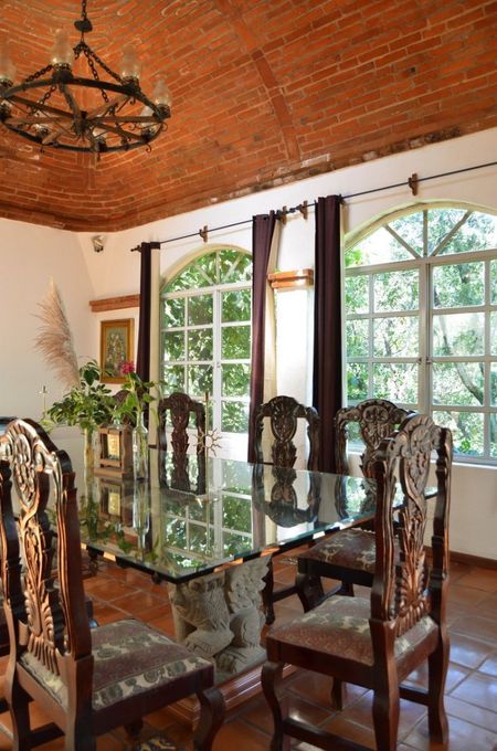 El área de comedor y sala, cuentan con vistas que complacen la exigencia a la tranquilidad, a admirar y escuchar a la naturaleza, ya que tiene ventanas con vista al majestuoso jardín y, aparte de tener una zona boscosa, en uno de los límites de la propiedad corre un río que nos alimenta el oído con el pasar del agua.