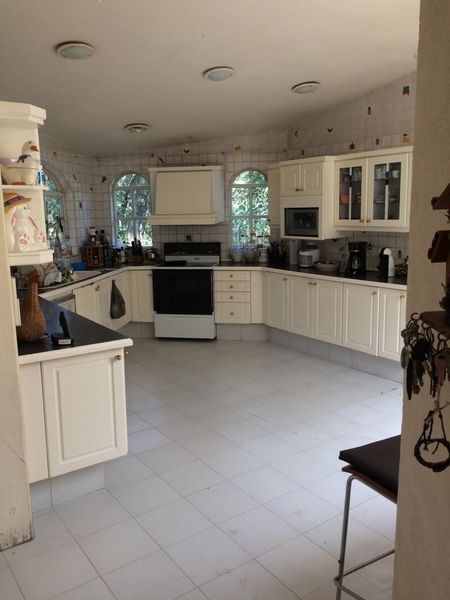 Por un lado, tenemos la cocina de espacioso tamaño, con una vista arbolada que nos hace deleitable la hora de la preparación de nuestros alimentos. Por otro lado, tenemos el acceso al despacho, comedor, sala, escaleras para las recámaras y estancia.