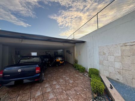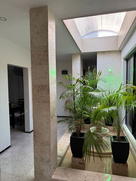 Cochera techada para 3 autos, jardín interior