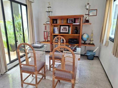 3 recámaras con closets, 3 baños, sala/comedor, estudio y cocina integral.