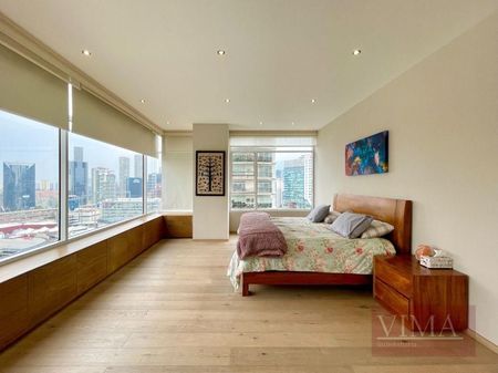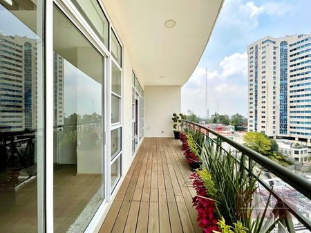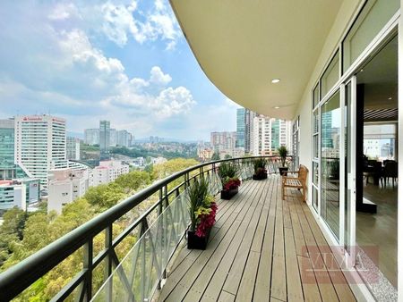 Amplio departamento de lujo con 362 m2. Tres recámaras con baño y vestidor, cocina renovada, persianas eléctricas, puerta blindada, tres lugares de estacionamiento, bodega y cuarto de servicio. Las áreas comunes incluyen: Alberca, gimnasio y salón de fiestas.