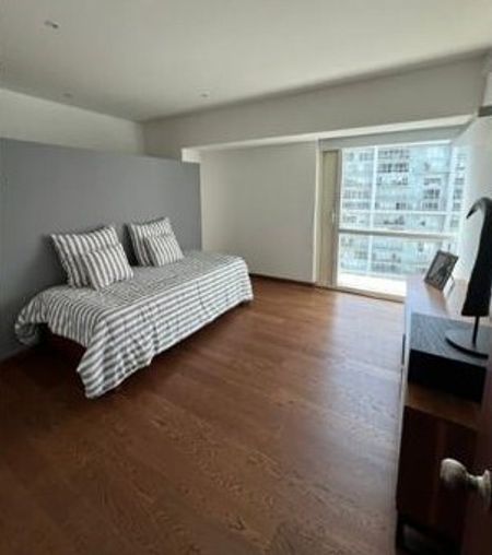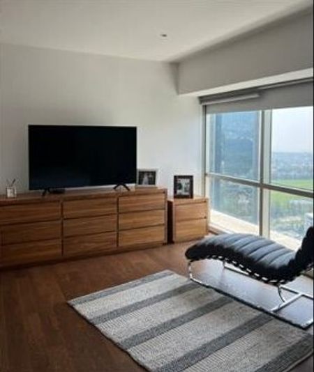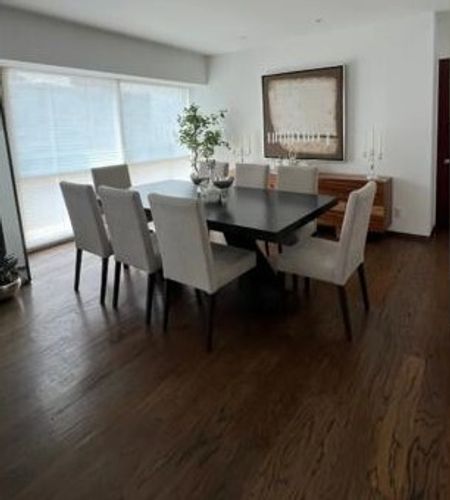 Al entrar, será recibido por una sala y comedor excepcionalmente amplios que se conectan de forma fluida, creando el ambiente ideal para recibir a sus invitados y disfrutar de reuniones familiares. Los grandes ventanales permiten una entrada de luz natural impresionante y ofrecen la exclusiva "vista a la mexicana", que captura la esencia vibrante y dinámica del paisaje urbano de la Ciudad de México.