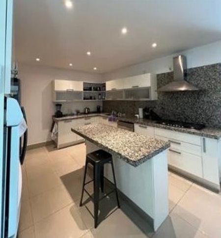 La cocina es generosa en espacio, con un diseño funcional que invita a la creatividad culinaria, y está lista para ser equipada a su gusto. Además, cuenta con un cuarto de servicio completo, proporcionando total comodidad y privacidad.