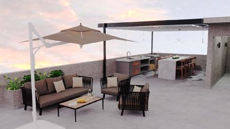 3 Recámaras, la principal con walk in closet, 2 baños completos y un medio bano. Cocina integral. 3 balcones. 1 cuarto de lavado, 2 cajones de estacionamiento y una bodega de almacenamiento por departamento.