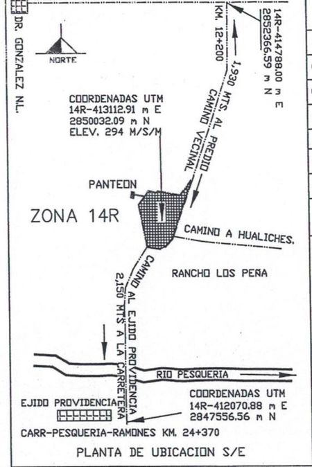 Ubicado cerca de Hacienda Los Peña, Los Hualiches y Santa María Pesquería , N. L.