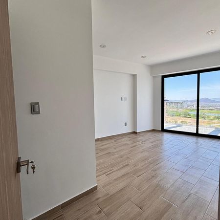 Departamento de 3 recamaras, cocina integral, terraza, closet en recamaras secundarias, una de ellas con baño y balcón, la otra con closet y comparte baño de visitas. La recamara principal con baño, vestidor y terraza con vista al campo de Golf.