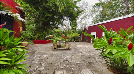 Se encuentra separada por una calle del viejo casco de la hacienda. Cuenta con un poco más de 32,000 m2 de terreno los cuales se encuentran totalmente bardeados con exuberantes áreas verdes y arboles frutales. Las escaleras de Piedra con flores de Buganvilia le dan acceso a la propiedad y desde otro punto se ingresa a través de un portón eléctrico a las amplias áreas verdes, disfrutando el estanque de lilas acuáticas, las palmas reales y vegetación endémica de la región.