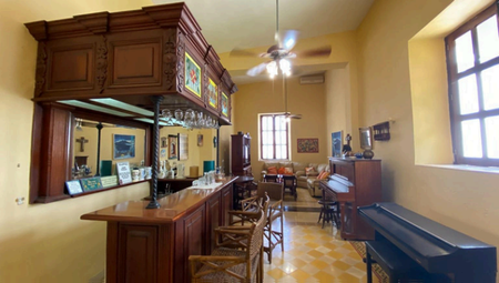Dentro de la hacienda se encuentra la biblioteca, estudio, área con bar y una amplia sala de TV con vista a los jardines. También cuenta con cuarto de servicio con baño y cuarto de lavado.