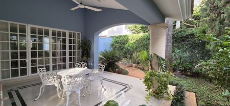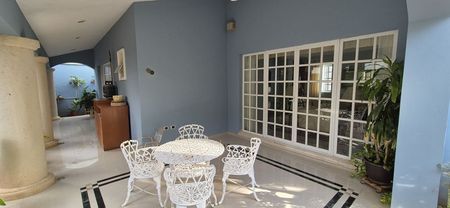 - Habitación en planta baja independiente con baño completo y cocineta acceso a exterior y a jardín que rodea la propiedad .