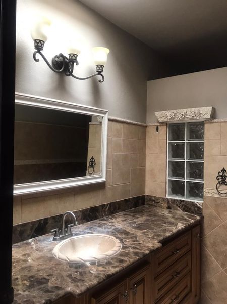 Cocina integral a la medida de madera, cubierta de granito y barra. Incluye refrigerador, estufa, microondas, lavatrastes, minisplit, alacena y lámpara de abanico.