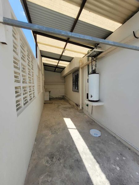 Area de lavado techado con calentador, batea, otra terraza sin techo.