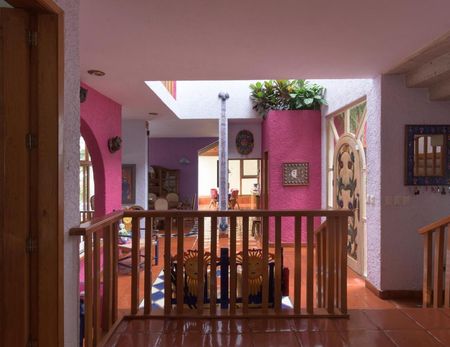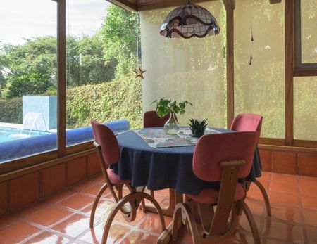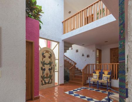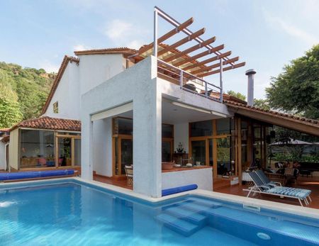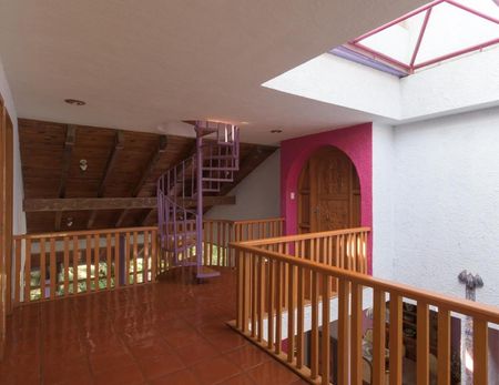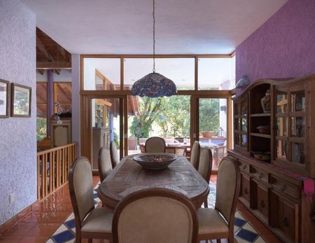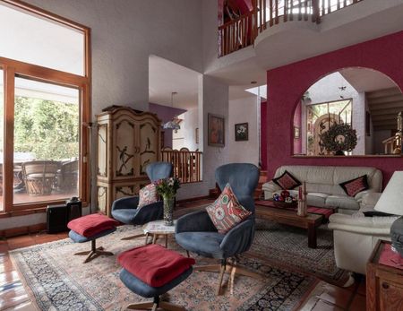 Hermosa residencia con un exquisito gusto y proyecto, en el ingreso a la propiedad cuenta con reja eléctrica, con un espacio para 6 autos techados, con piso a base con piedra laja, un recibidor y sala a doble altura lo que proporciona frescura y excelente iluminación, rodeada de precioso jardín que en la parte trasera existe una cancha de Fútbol, Voleibol y Bádminton. Todo el entorno es arbolado lo que hace sentir que estamos en un agradable bosque particular. La cocina se remodeló con accesorios modernos tales como estufa, refrigerador , horno eléctrico, microondas, lavavajillas, campana extractora etc... La recámara principal tiene una amplitud extraordinaria y una terraza donde se admira una vista encantadora, se amplió el baño principal y se diseñó un amplio closet-vestidor.