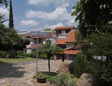 En la terraza principal se cuenta con una agradable alberca que cuenta con paneles solares para contar con agua caliente todo el tiempo y tiene tratamiento con sal (no clorada) con una dimensión de 3.50 mts por 10.00 mts. La propiedad tiene sensores tanto en el exterior como el interior. Se instaló un equipo de celdas fotovoltaicas y sus complementos para generar electricidad reduciendo el costo a menos del 10%. La casa cuenta también con un nuevo cárcamo para bombear al drenaje las aguas negras, con lo cual se evita el uso de fosa séptica y su mantenimiento y limpieza constante. Cisterna de casi 6,000 lts.de agua y Sistema de riego por aspersión para todo el jardín.