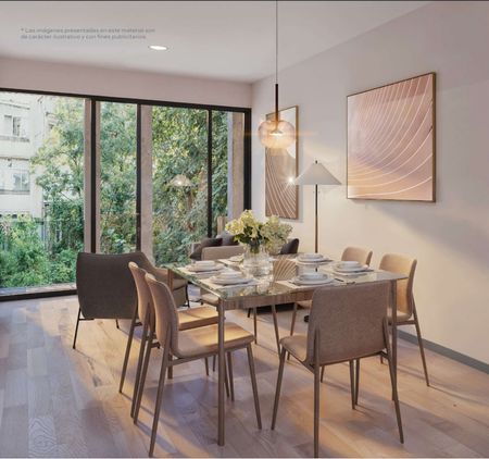 - Cancelería de piso a techo, que te permite disfrutar de la luz natural y la vista