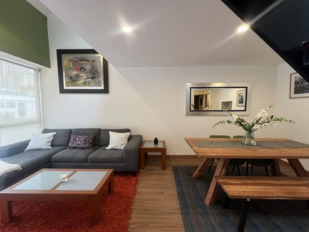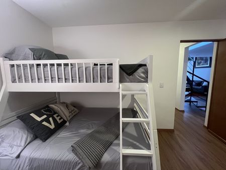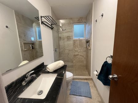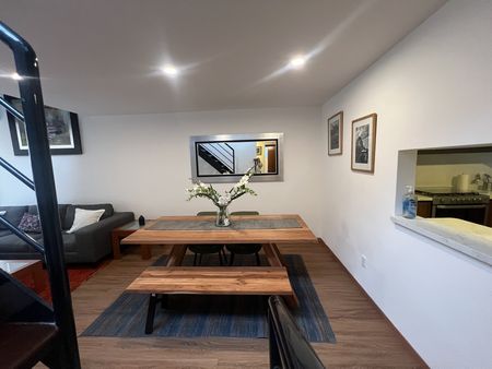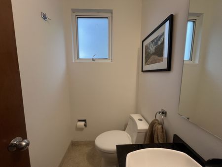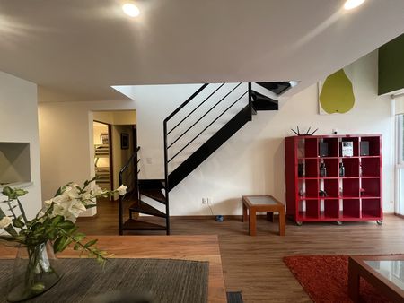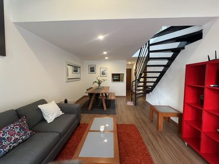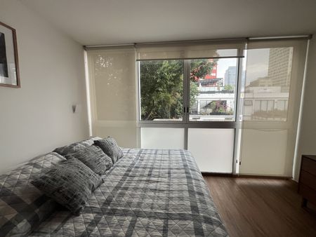 Céntrico y tranquilo penthouse con terraza privada. Vista arbolada. 2 recámaras. Sala con doble altura. Totalmente equipado y amueblado.