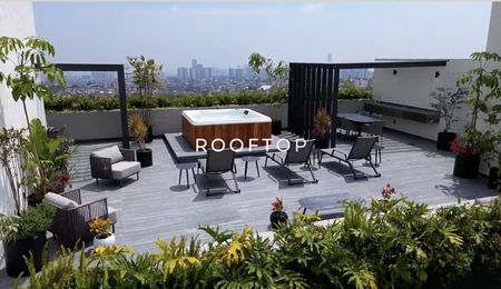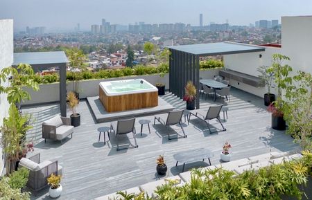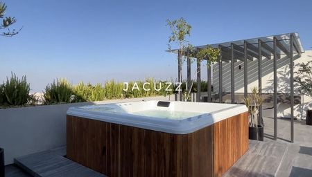y vestidor. Estudio, Family Room, terraza, Roof Garden con jacuzzi privado, 6 cómodos lugares de estacionamiento.