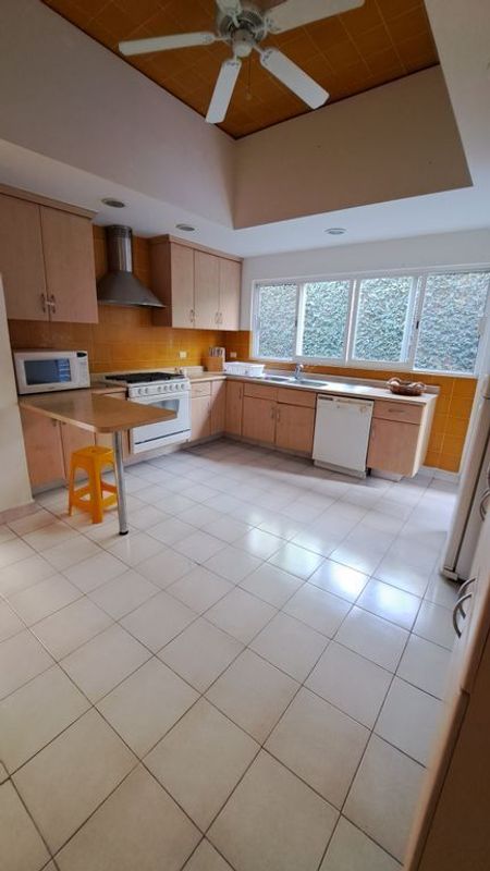 Terraza con asador para convivencias y fines de semana inolvidables. Área de lavandería y planchado. Cuarto de servicio con baño. Estacionamiento techado para dos autos.