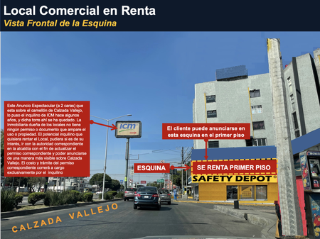 - *Condiciones Flexibles de Contrato.* *¡Contáctanos para más información sobre este increíble local comercial en Calzada Vallejo!* Estamos listos para orientarte en el proceso de arrendamiento y ayudarte a encontrar el espacio perfecto para tu negocio.