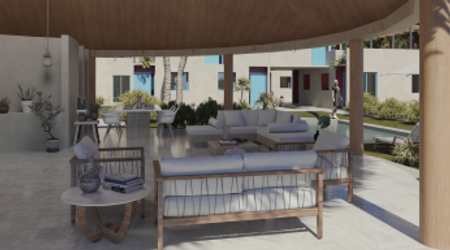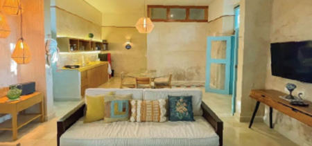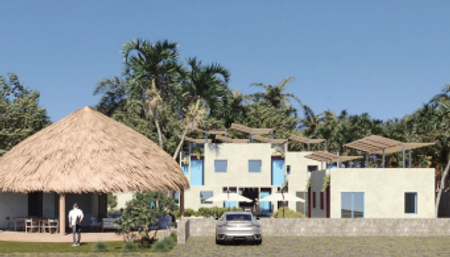 Los loft o villas se organizan en una planta rectangular con una distribución funcional que aprovecha al máximo el espacio disponible. La estructura principal se compone de muros de mamposteria y techos planos de losa de vigueta y bovedilla, elementos tradicionales de la arquitectura local. La fachada se caracteriza por su sencillez y se integra armoniosamente con el paisaje circundante.