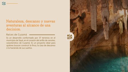 ¡Descubre tu propio refugio en Raíces de Cuzamá! Situado en el corazón de la tierra de los cenotes más impresionantes de Yucatán, este desarrollo te ofrece la oportunidad de tener tu propio terreno con acceso a la maravilla natural que atrae a turistas de todo el mundo cada día.