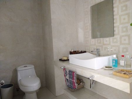 Finos acabados, con pisos de mármol travertino 60 x 60 y hermosos muebles.