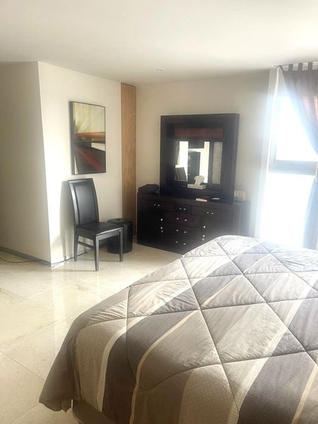 Impecable y moderno departamento en el desarrollo de Reforma 222 en piso alto con vistas a la ciudad.Esta en dos niveles con tres recamaras muy amplias cada una con su baño,estudio y sala comedor y cocina de gran tamaño.La propiedad tiene seguridad de primera y todas las amenidades como alberca gimnsasio sala de proyecciones centro de negocios y salón de fiestas ademas de estar arriba del centro comercial con tiendas y restaurantes y una ubicacion inmejorable.Ademas el precio esta mas abajo que cualquier otro a la venta ahi. En renta incluye muebles !!