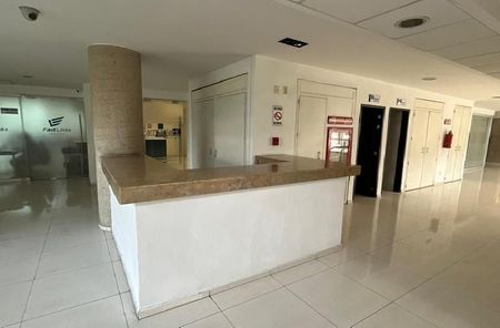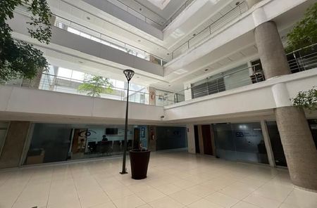 Este edificio corporativo ofrece un entorno profesional con seguridad 24/7, control y registro de acceso, elevador, terraza, máquinas expendedoras y áreas comunes diseñadas para brindar comodidad a colaboradores y visitantes.