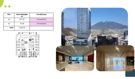 Oficina en renta – Pisos 64 y 65 (amueblada)