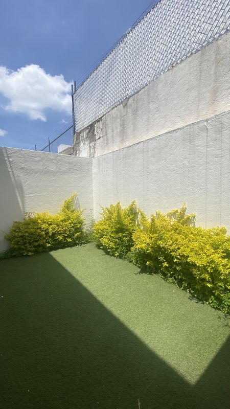 Sala, comedor , baño de visitas, cocina integral, alacena, área de lavado externa y jardín con pasto sintético , cochera para dos autos.