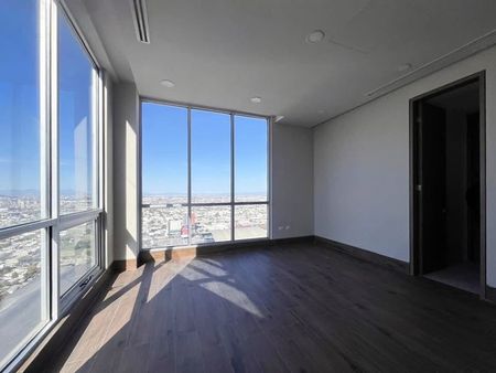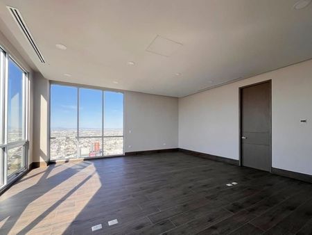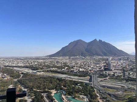 Exclusivo Penthouse en Venta con vistas panoramicas de 360 grados que combina lujo y confort, piso 28, 2 niveles, 459.61 m2, ubicado frente a Parque Fundidora, Cintermex, Paseo Santa Lucia, Arena Monterrey, en Planta Baja cuenta con 2 Recamarars secundarias con baño-vestidor, Terraza con asador privado, Family Room, el area de Sala-Comedor destaca por su techo de doble altura lo cual ofrece un ambiente aun mas amplio y elegante, un baño en area social, area de lavanderia y Recamara de servicio.