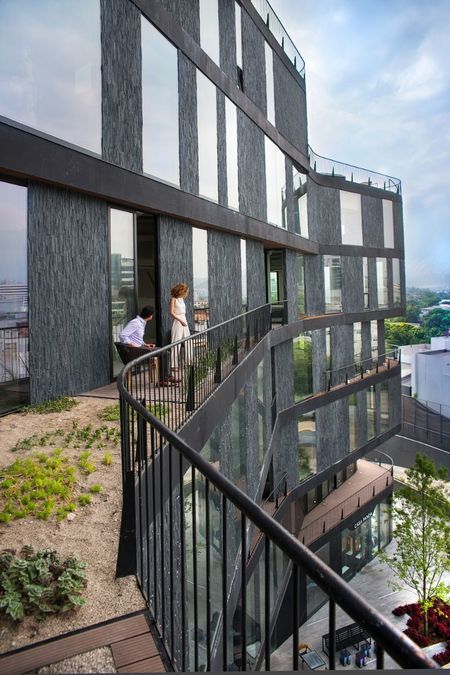 El edificio cuenta con estacionamiento subterráneo, planta de área comercial, 13 oficinas en el segundo y tercer nivel y 31 residencias exclusivas.