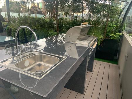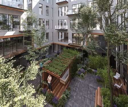 • Cocina abierta con electrodomésticos integrados (Refrigerador, lavavajillas, horno de microondas, lavadora y secadora).