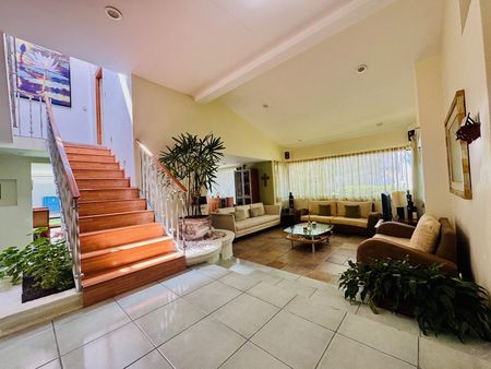 Una bella casa de ambientes amplios y fluidos. La casa cuenta con un Portal muy agradable que cobija tu recepción de los días cálidas de los días cálidos de la primavera. Una puerta grande te recibe con gracia y estilo. Su vestíbulo es muy agradable con piso italiano marca Pastorelli, al costado izquierdo se encuentra un despacho amplio con vista al jardín frontal que pudiera funcionar fácilmente como recámara en planta baja ya que al lado se encuentra divino baño de visitas que es amplio y muy cercano se encuentra el baño de servicio y podría remodelarse.