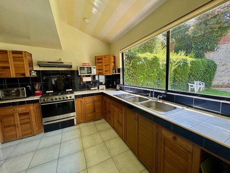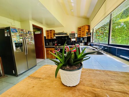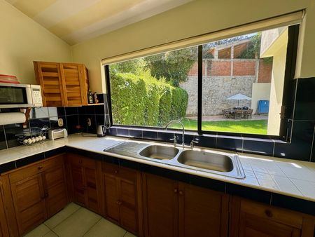 Al costado se encuentra el ante-comedor ambiente. Súper agradable, inspirado para convivir y disfrutar de la familia. Este espacio cuenta con puertas corredizas para salir a una terraza de sobremesa su jardín, además de ser muy grande y bello cuenta con árboles frondosos y es una topografía plana. Su forma abosada genera privacidad y y un ambiente espacioso para disfrutar de la naturaleza al máximo. AsÍ mismo, junto al desayunador se encuentra una cocina de diseño muy funcional con un cierto sabor rústico contemporáneo, diseñada un poco más alta de lo normal, la plancha de trabajo para generar mayor salud ergonómica al trabajar en la cocina su distribución es muy funcional y su diseño es muy bonito. Cuenta con despensa, cuarto de lavado y cuarto de servicio. De forma anexa.
