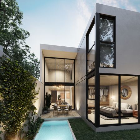 Opcionales: cochera techada, piscina, closets, fijos de cristal templado en baños.