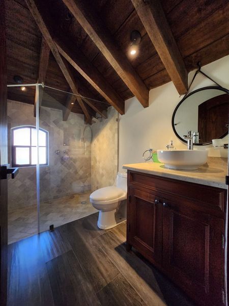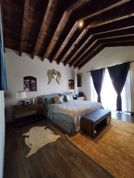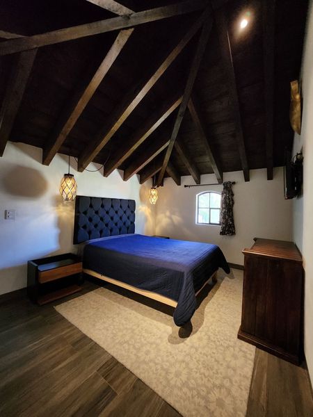 Segundo Nivel: En la planta superior, se accede por una escalera de madera con cristal templado. Aquí se encuentra una recámara con mezzanine y espacio para tres camas matrimoniales, además de un baño completo. Otra recámara amplia tiene salida a una terraza abierta, con walk-in closet y vistas al lago. Hay una escalera interna que conduce a la terraza de la azotea.