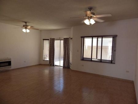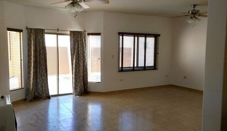 1 planta, sala, comedor, cocina integral con refrigeradorm estufa y campana, estancia, 3 recamaras la principal con baño vestidor, 1 baño completo para las otras 2 recamaras, cuarto de servicio, patio muy amplio, cochera techada para 2 carros