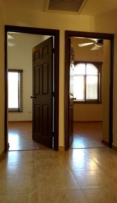 La casa tiene 2 refrigeraciones central, abanicos de techo en casa habitacion, closets de doble altura, persianas de madera, tanque estacionario y bomba hidroneumatica