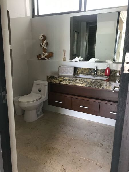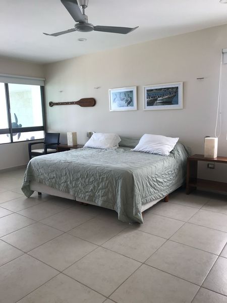 3 recámaras con baño cada una, closet en cada recámara con aires acondicionados, ventiladores y cortinas