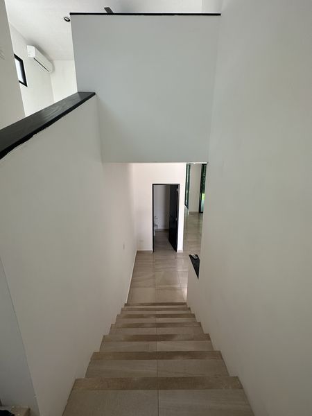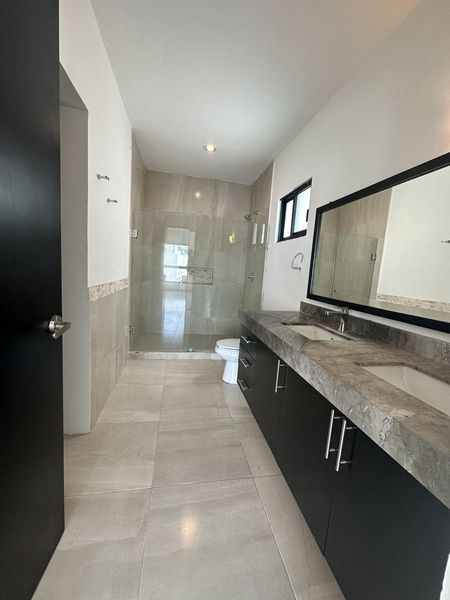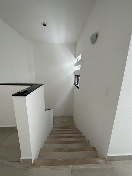 La planta alta tiene distribuidas tres recamaras, la principal de buenas dimensiones, closet vestidor con vista al jardín y baño con doble lavabo, dos secundarias con aire acondicionado, closet vestidor una sala de TV también con aire acondicionado.