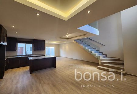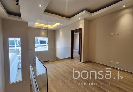 Beautiful house for sale in one of the newest neighborhoods in the city. Come and enjoy this pleasant residence, tastefully decorated with spacious, well-lit rooms that are harmoniously distributed throughout. The house is semi-new with high-quality finishes. The first floor has a double-height dining room, living room, kitchen, half bathroom, indoor laundry room, patio with synthetic grass areas, study/office in the back with separate entrance and full bathroom. Parking for two cars. Second floor, TV area, master bedroom with large closet, balcony, and full bathroom. Two secondary bedrooms with large closets, which share a full bathroom. Its location is privileged not only for its connectivity, as you can walk to restaurants and schools of all levels.