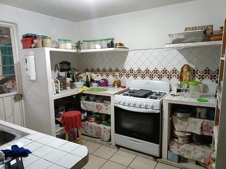 La casa cuenta con departamento en planta alta con entrada independiente, dos recámaras, un baño completo y área de cocina con tarja.