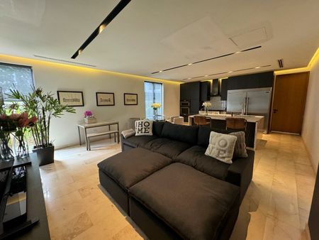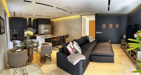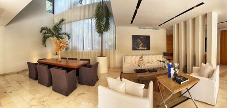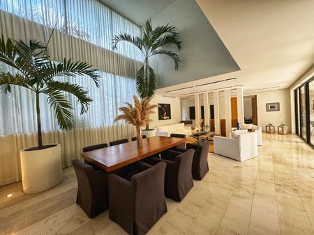 La sala y comedor se conectan a una enorme terraza techada que cuenta con una barra y un baño completo que le da servicio al área exterior.