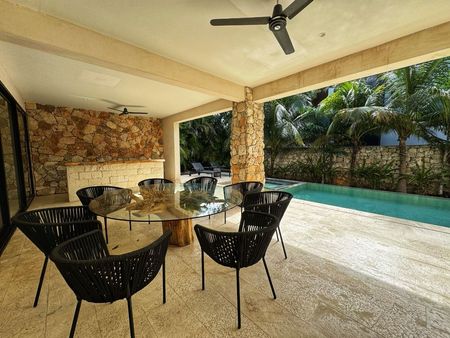 Se vende preciosa casa con súper acabados sobre la avenida principal del Yucatán Country Club. Tiene la gran ventaja de tener la entrada por la avenida principal pero al mismo tiempo pertenece a la privada de Cutzam por lo que tienes acceso a las amenidades de este conjunto que incluyen un amplio parque central rodeado de árboles, una cancha de padel y juegos infantiles techados.
